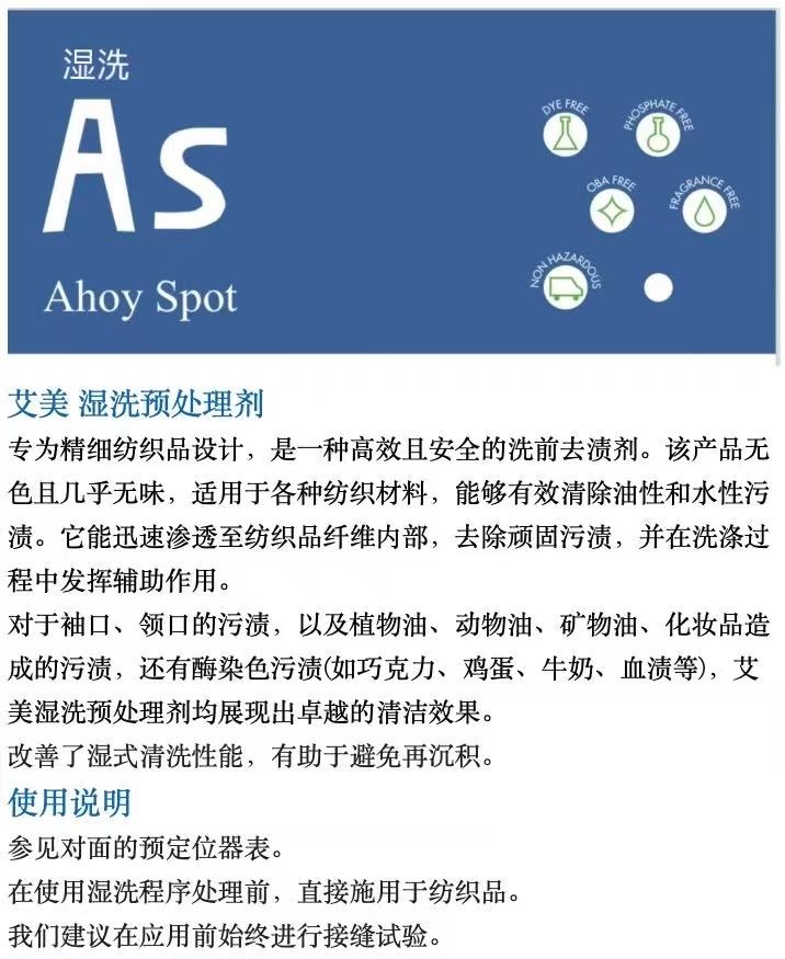 艾美湿洗预处理剂(Ahoy Spot)采用欧洲技术,原装进口,专为精细纺织品设计,是一种高效且安全的洗前去渍剂。该产品无色且几乎无味,适用于各种纺织材料,能够有效清除油性和水性污渍。它能迅速渗透至纺织品纤维内部,去除顽固污渍,并在洗涤过程中发挥辅助作用。对于袖口、领口的污渍,以及植物油、动物油、矿物油、化妆品造成的污渍,还有酶染色污渍(如巧克力、鸡蛋、牛奶、血渍等),艾美湿洗预处理剂均展现出卓越的清洁效果。