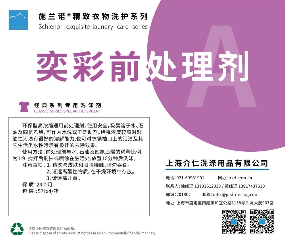环保型高浓缩通用前处理剂,使用安全,极易溶于水、碳氢及四氯乙烯,可作为水洗或干洗助剂。稀释浓度较高时对油性污渍有很好的溶解能力,也可对衣领袖口上的污渍及其它生活类水性污渍有极佳的去除效果。