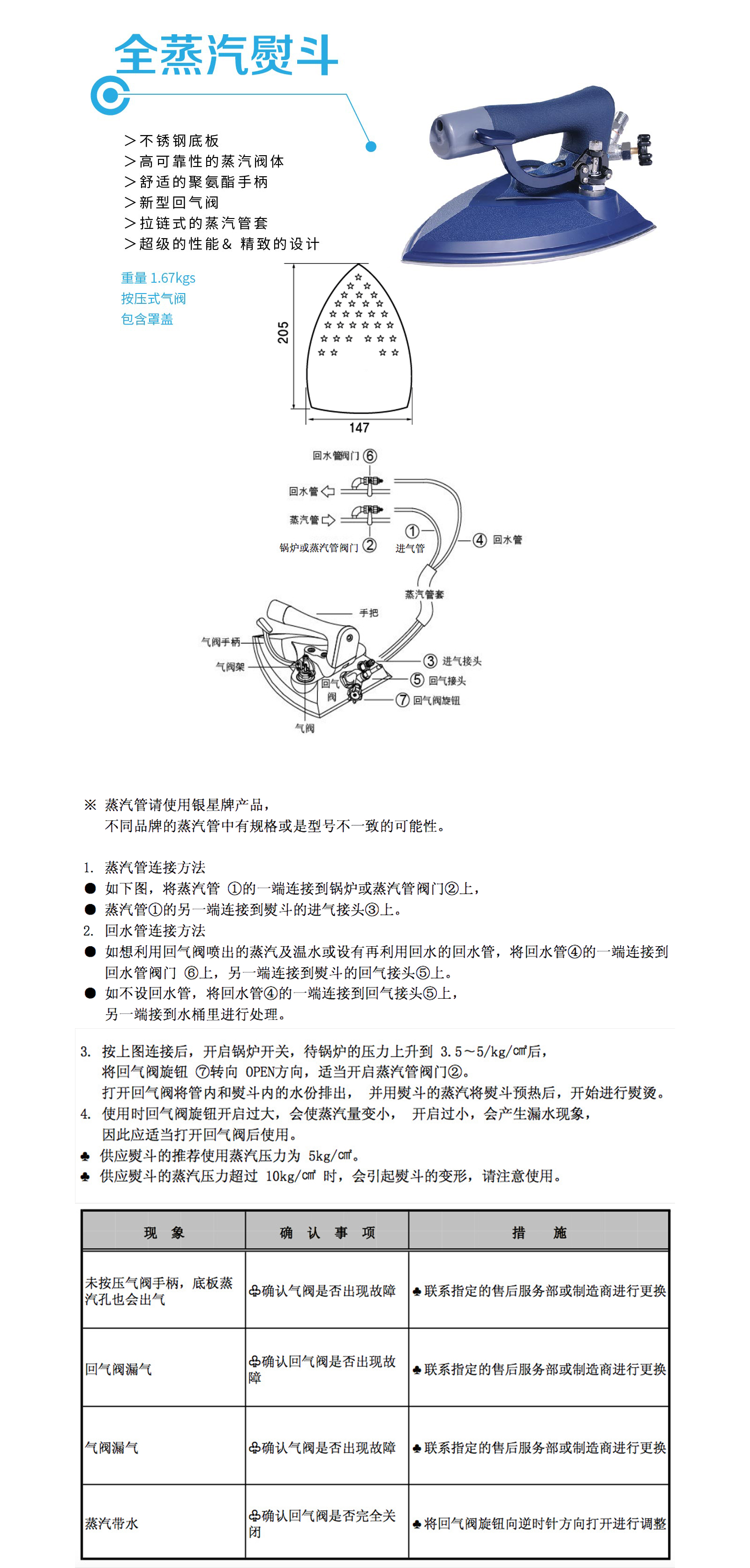 名称:全蒸汽熨斗(带疏水阀)