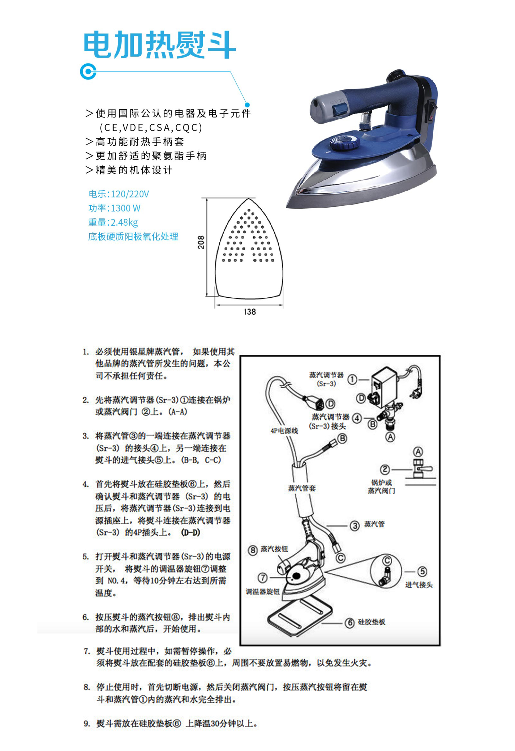名称:电加热蒸汽熨斗(带电磁阀)