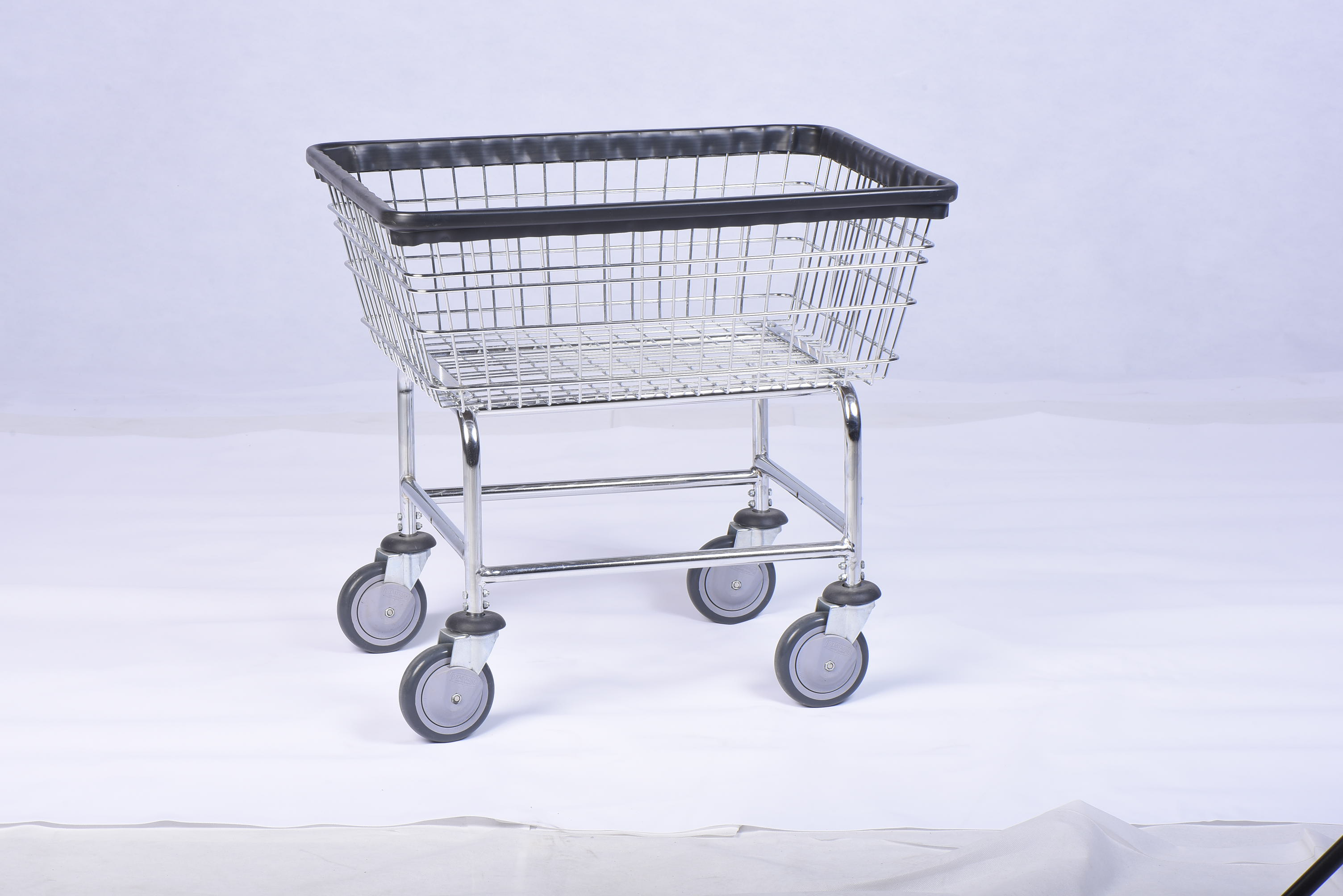 本洗衣篮车专为洗衣店、洗衣中央工厂、酒店洗衣房成品衣物洗前,洗后运输使用,选用高强度碳钢材,耐磨橡塑胶条,耐腐镀铬,坚固耐用。