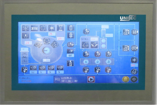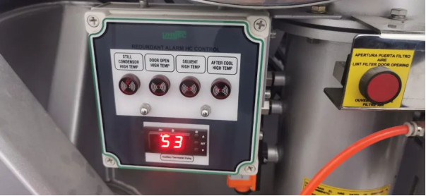 第一级,温度控制器。多溶剂干洗机带有烘干温度控制器、溶剂温度控制器和真空泵温度控制器,控制器被预设了安全温度上限,所以使用者之可以在安全温度范围内对温度进行调整。