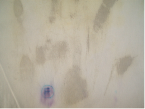 在实验干洗的洗涤能力方面我们遇到了一点难题,就是很难找到一件很脏的衣物来进行试验,即使找到但是它更适合用水洗处理。所以最后我们专门进行了一个四氯乙烯干洗和碳氢干洗的洗涤效果的测试:测试结果和实验报告相吻合,通过下面的照片我们看到,上面的油渍全部去除干净,剩下的是泥土的污渍和色素污渍,而这两项都是固体污渍。对于固体污渍的去除,碳氢干洗的能力略逊于四氯乙烯。但是在实际工作中,我们通常会选择水洗来去除这类污渍。