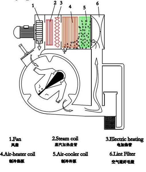 碳氢溶剂在提高闪点的同时降低了溶剂的挥发性能,机器的烘干风道如果使用传统设计烘干时间会长得让人无法接受。碳氢干洗机使用了更强力的风扇和短而粗的风道设计以增加空气流通量,提高回收速度。所以,目前碳氢干洗机的烘干时间已经和四氯乙烯干洗十分接近了。