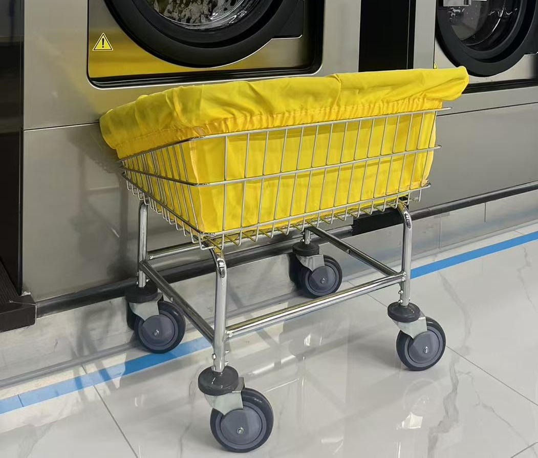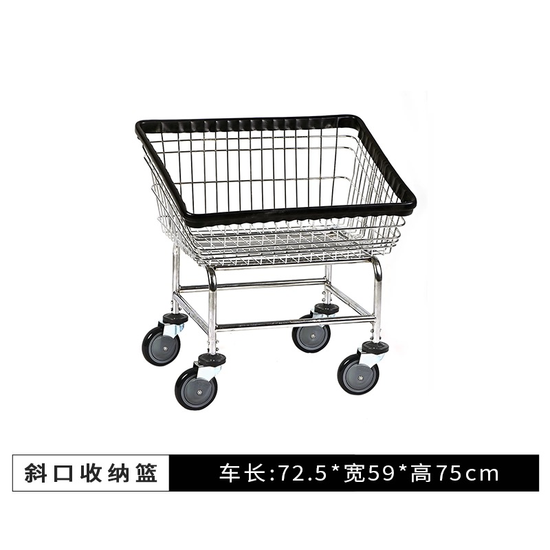 品名:斜口篮车、自助洗衣车、干洗篮车、洗衣车、布草车材质:碳钢 (表面镀铬)尺寸:高725X宽590X长750产品包装:纸箱适用于洗衣店、洗衣中央工厂、酒店洗衣房。